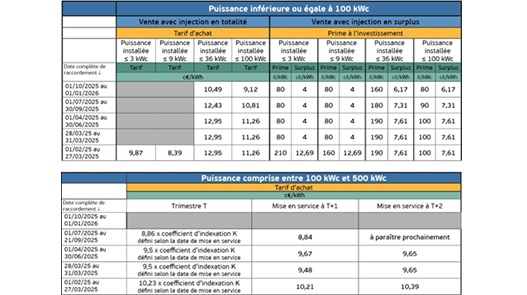 La CRE a publié ce 6 octobre 2025 les nouveaux tarifs d’achats du trimestre 16, applicables jusqu’au 1er janvier 2026. Nouveaux tarifs d’achats S21 pour les installations de puissances inférieures à 100 kWc (toitures et ombrières photovoltaïques). Pour rappel, l’arrêté tarifaire dit S21 fixe les conditions d’achat de l’électricité photovoltaïque produit. Il s’applique aux installations implantées sur